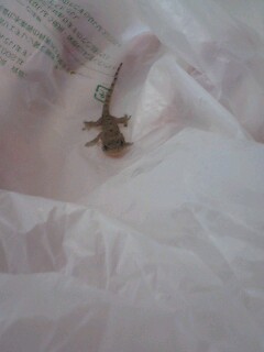 体長2.5㎝ほどのかわいいやもりさん.おとなしかったのでビニール袋のなかに捕獲しました^^